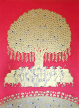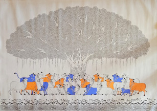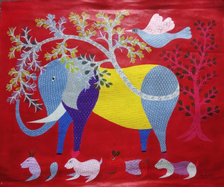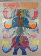 The Gond tribe believes that decorating their homes and floors with traditional motifs brings them good luck. Gond art has since transposed onto paper and canvases. The individuality of each Gond artist is defined by their signature styles.