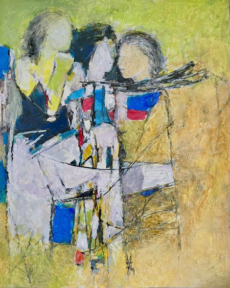 Jiten, born in Assam, had a natural artistic talent that was very apparent in childhood. He graduated in Civil Engineering in 1963 and was commissioned in the Corps of Engineers, Indian Army, in 1964. Attaining the Rank of Colonel, he retired prematurely in 1990 to devote himself to painting. Jiten has accumulated a deep knowledge of Philosophy and Sanskrit literature and this is reflected in his paintings, as are his childhood memories of day to day life in rural Assam. His work had been the subject of academic research even at a doctoral level. Jiten lives and works in Noida.