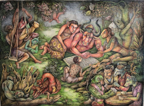 Sakti Burman was Born in Kolkata, He graduated from the Government College of Arts and Crafts, Kolkata, in 1956. He studied at the Ecole Nationale Superieure des Beaux Arts in Paris. His works have been exhibited at the Grand Palais, Paris (1975, 1994) and the French Biennales (1963, 1965 & 1967). They have also been shown in museums in France including the Musée de Blois, the Musee de Villeneuve-sur-Lot, the Musee Denon and the Chalon-sur-Rhone. He has heldseveral exhibitions across the globe, the most recent being his works titled The Beholder's Share at Art Musings, Mumbai in March 2016. Burman was conferred with the prestigious Knight of the Legion of Honour in 2016, for his extraordinary work, located at the confluence of French, European and Indian cultures, and the enduring relations he has established between France and India. Sakti Burman lives and works in Paris.