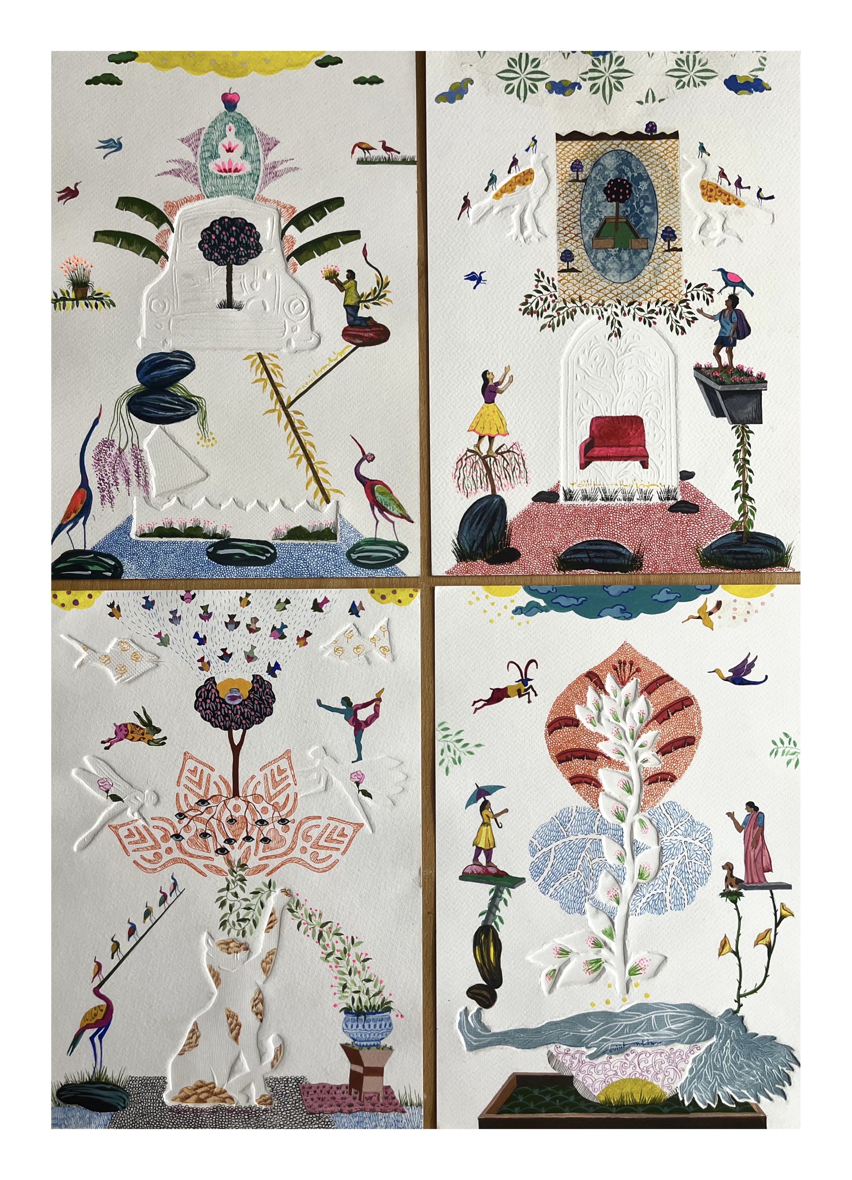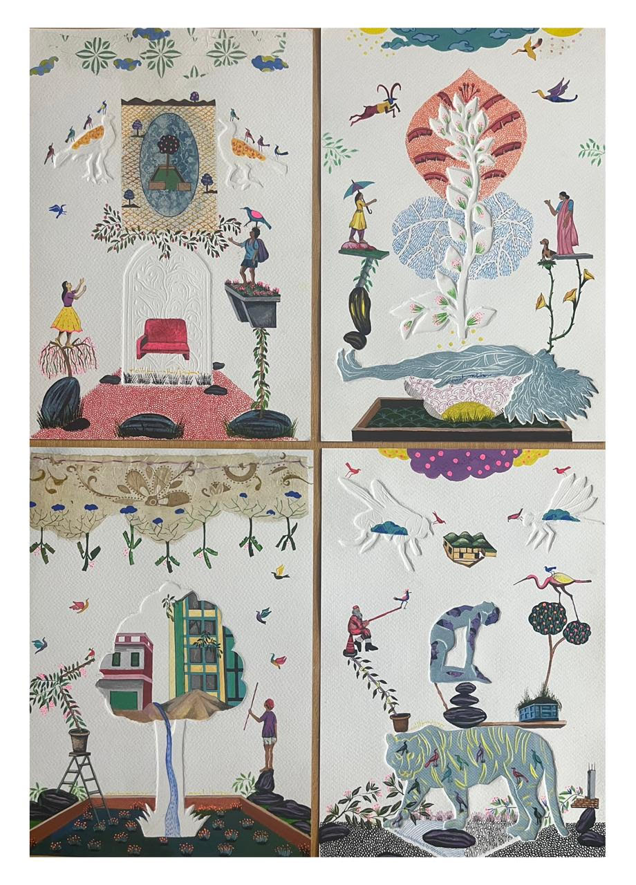 | Medium : | Embossed, pen & ink and gouache on fabriano paper |