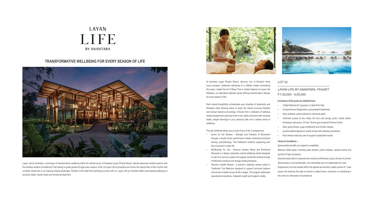At Anantara Layan Phuket Resort, discover one of Phuket’s finest luxury escapes. Celebrate milestones in a cliffside chapel overlooking the ocean, master the art of Muay Thai or restore balance at Layan Life Wellness, our dedicated wellness center offering transformative retreats for every season of life. Each retreat thoughtfully orchestrates your schedule of treatments and therapies while allowing space to enjoy the resorts luxurious facilities and tranquil natural surroundings. Choose from a collection of wellness retreat programmes spanning three to ten nights and leave with renewed vitality, deeper learnings to your personal path and a radiant sense of wellbeing. This gift certificate allows you to avail of any of the 3 programmes: • Active for Life Restore : Strenght and Freedom of Movement through a results driven performance retreat combining functional training, physiotherapy, Thai traditional medicine supporting pain free movement in daily life. • Mindfulness for Life : Nervous System Reset and Emotional Renewal is a deeply restorative mental wellbeing retreat designed to calm the nervous system and support emotional healing through mindfulness practices and energy healing therapies. • Women’s Health Retreat : a women’s wellness retreat rooted in Traditional Thai Medicine designed to support hormonal balance and women’s health across all life’s stages. The program addresses reproductive transitions, metabolic health and longterm vitality.