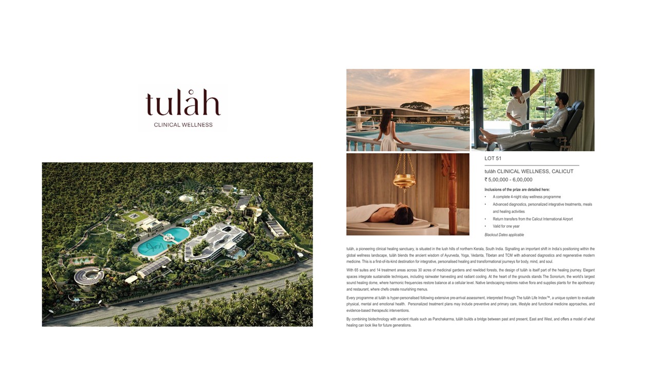 tulåh, a pioneering clinical healing sanctuary, is situated in the lush hills of northern Kerala, South India. Signalling an important shift in India’s positioning within the global wellness landscape, tulåh blends the ancient wisdom of Ayurveda, Yoga, Vedanta, Tibetan and TCM with advanced diagnostics and regenerative modern medicine. This is a first-of-its-kind destination for integrative, personalised healing and transformational journeys for body, mind, and soul. With 65 suites and 14 treatment areas across 30 acres of medicinal gardens and rewilded forests, the design of tulåh is itself part of the healing journey. Elegant spaces integrate sustainable techniques, including rainwater harvesting and radiant cooling. At the heart of the grounds stands The Sonorium, the world’s largest sound healing dome, where harmonic frequencies restore balance at a cellular level. Native landscaping restores native flora and supplies plants for the apothecary and restaurant, where chefs create nourishing menus. Every programme at tulåh is hyper-personalised following extensive pre-arrival assessment, interpreted through The tulåh Life Index™, a unique system to evaluate physical, mental and emotional health. Personalized treatment plans may include preventive and primary care, lifestyle and functional medicine approaches, and evidence-based therapeutic interventions. By combining biotechnology with ancient rituals such as Panchakarma, tulåh builds a bridge between past and present, East and West, and offers a model of what healing can look like for future generations