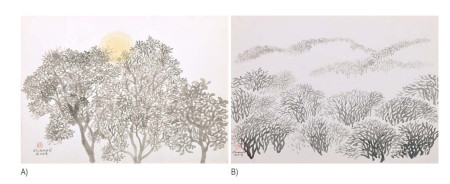 Born in Santi Niketan in 1940 to Indian and Chinese parents, Chameli Ramachandran received her Diploma in Fine Arts and a Master's degree in ancient Indian history and culture at Kala Bhavan and Visva Bharti University. Her work depicts a distinctive style of delicate brush work derived from Chinese paintings and calligraphy. Her paintings reflect her admiration for nature. She has exhibited in numerous solo and group shows. The artist lives and works in New Delhi.